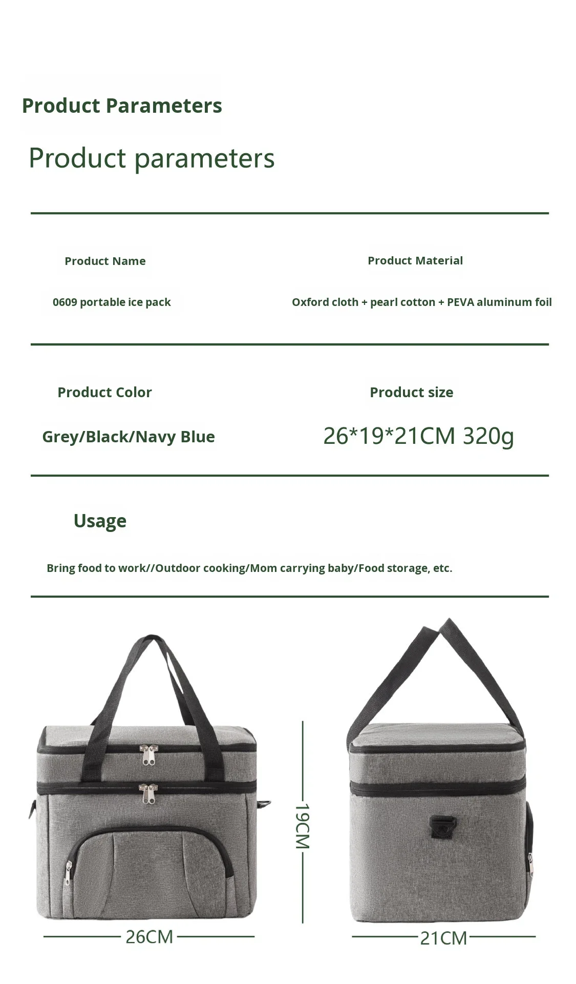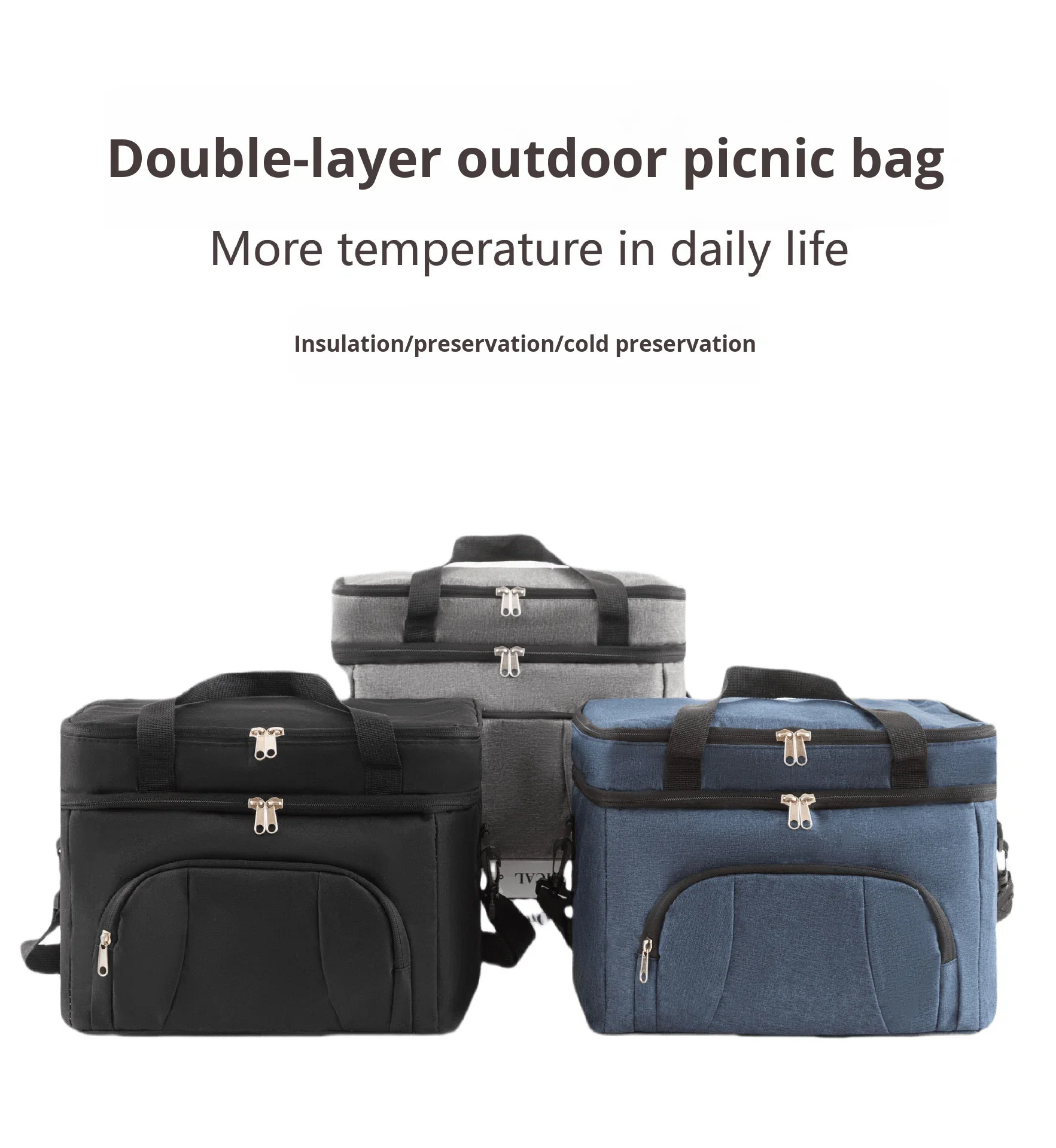 Cross-Border Exclusive Supply Oxford Double-Layer 20L Insulated Backpack Ice Packs for Outdoor Travel Picnic Work Portable Lunch