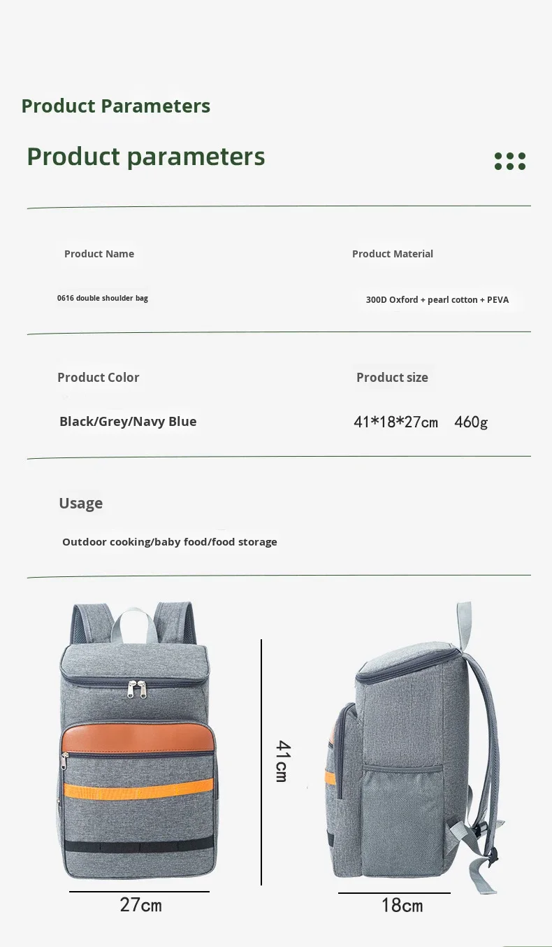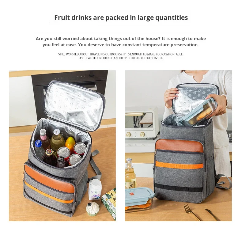 XK for Cross-Border Double-Shoulder Insulated 20-35L Outdoor Picnic Backpack Oxford Cloth Waterproof Fresh-Keeping Cold Bag