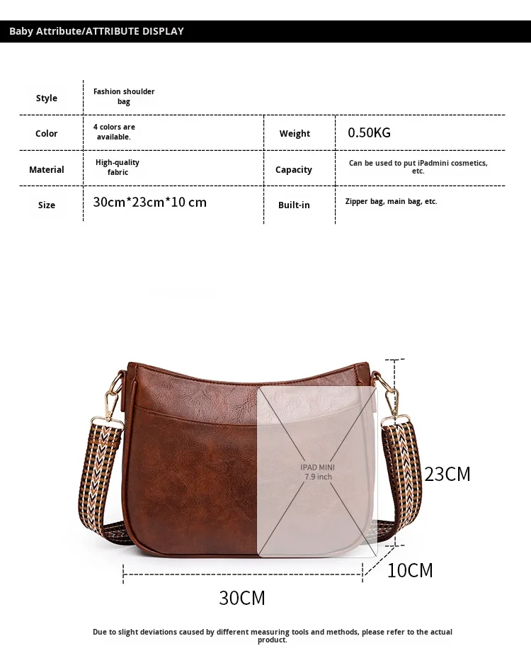 Large Capacity Vintage Crossbody Bag for Women with Polyester Lining for Office Commute or Casual Outings