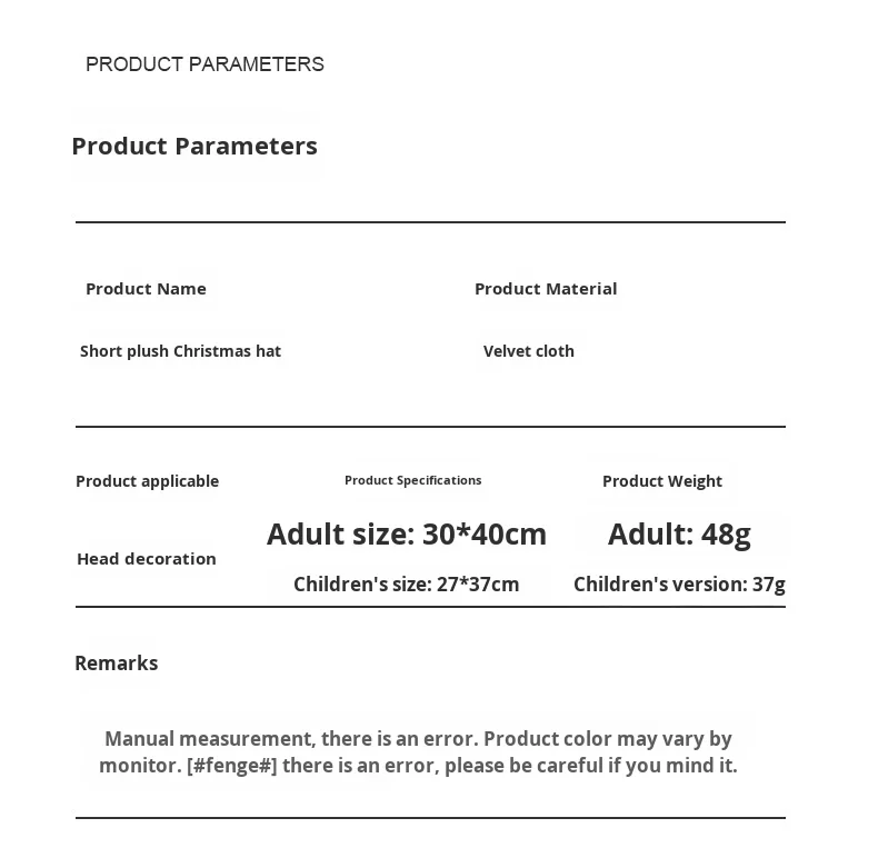 Cross-Border Hot Sale Christmas Short Plush Cloth Hat European Style Adult Children Party Costume Decoration Supplies