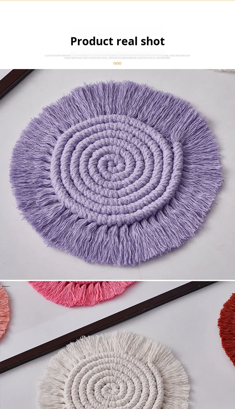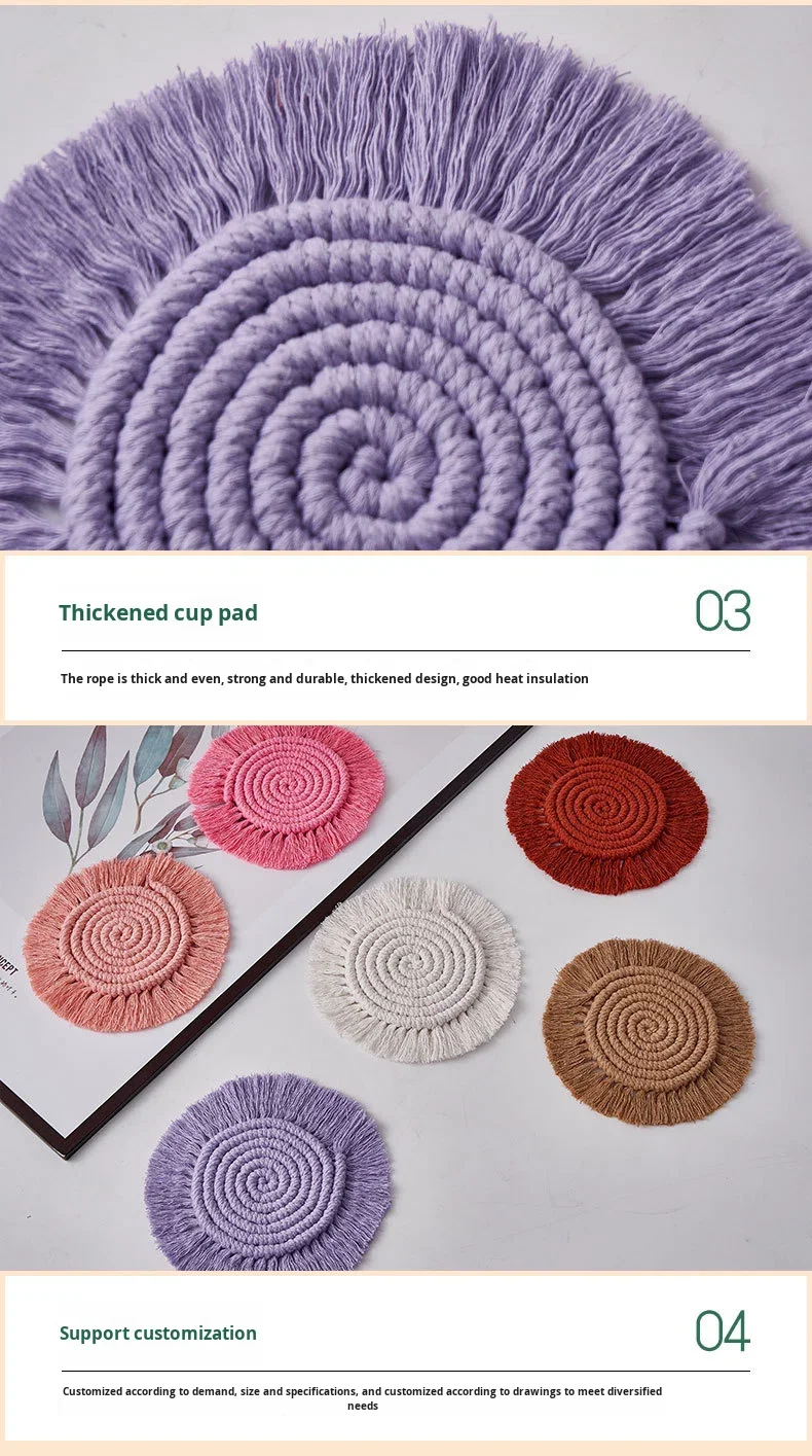 Modern Tassel Coasters Hand-Woven Cotton Rope Placemats Heat-Insulating Bowl Mats Coffee Coasters 3mm