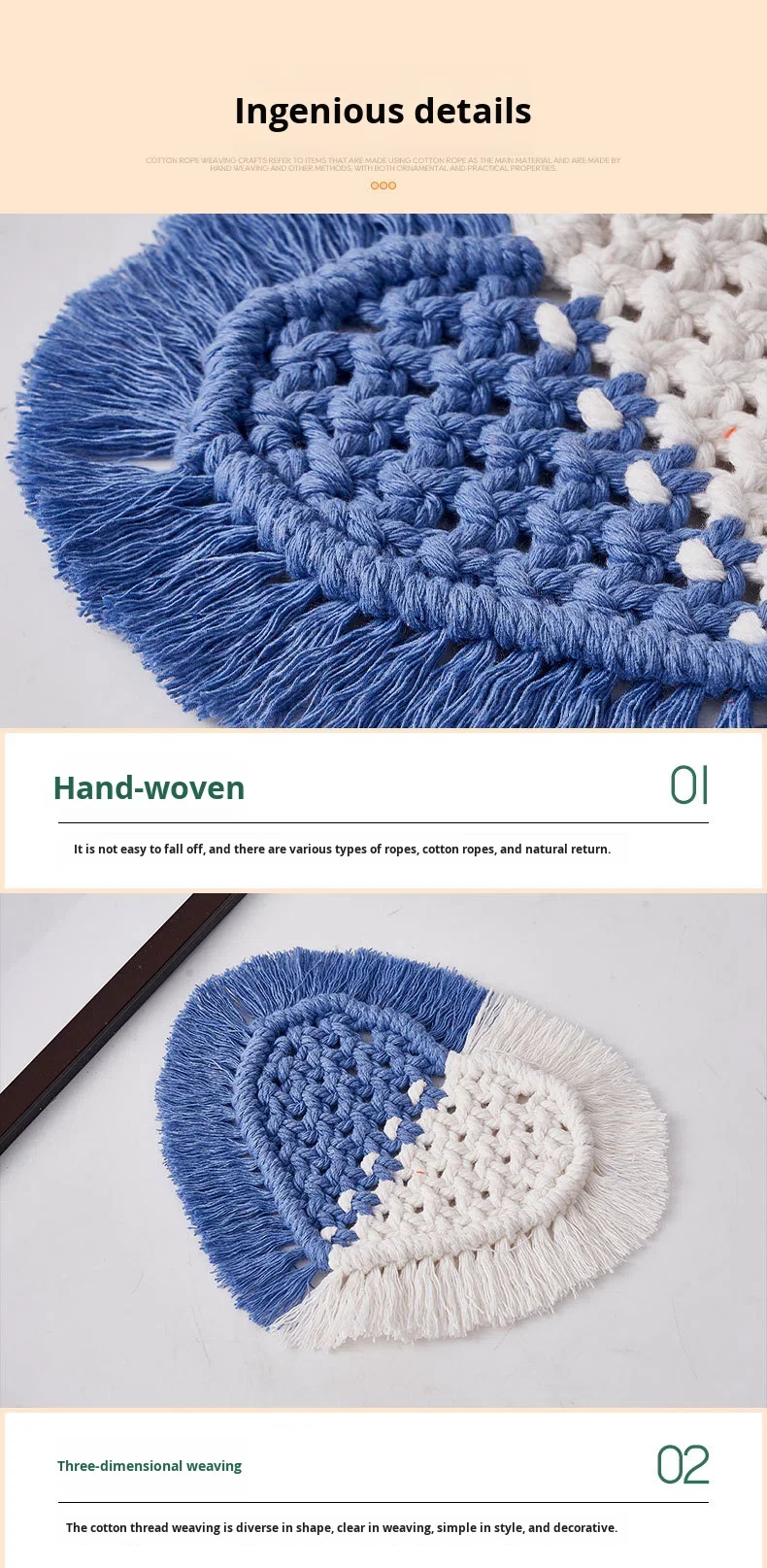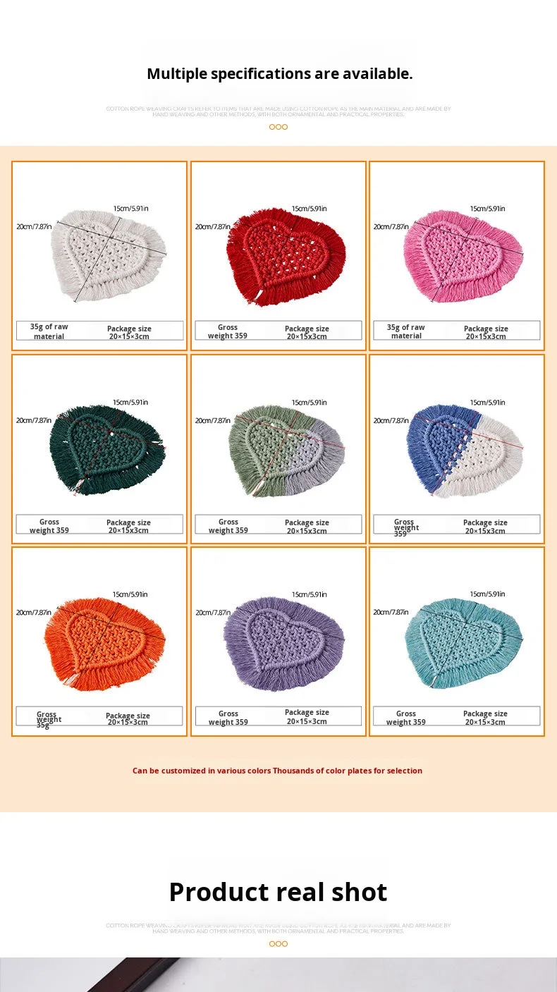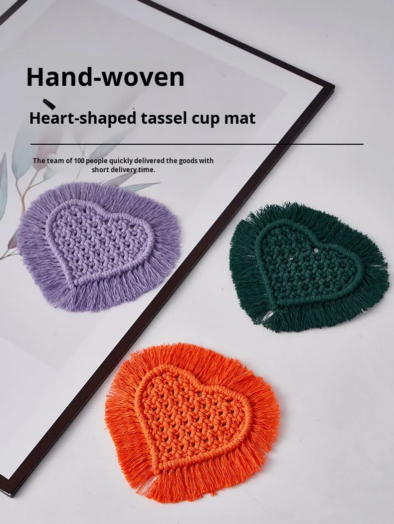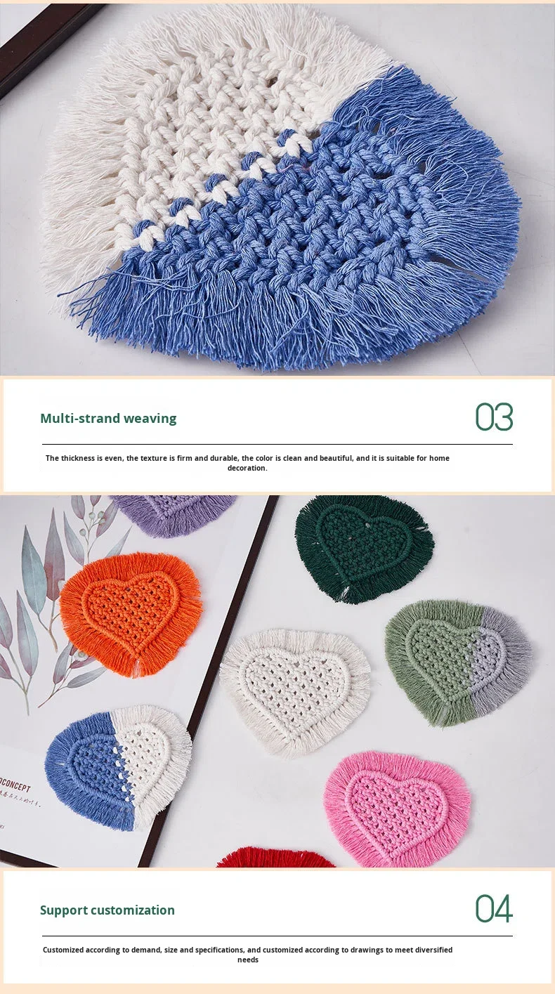 Heart-Shaped Tassel Coaster for Hand-Woven 100% Cotton Rope Reusable Desktop Photography Decoration DIY Heat Insulation Mat