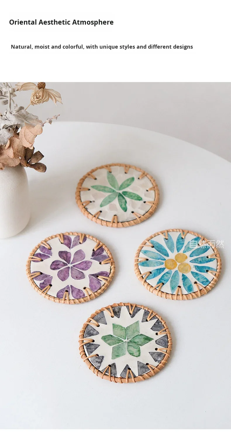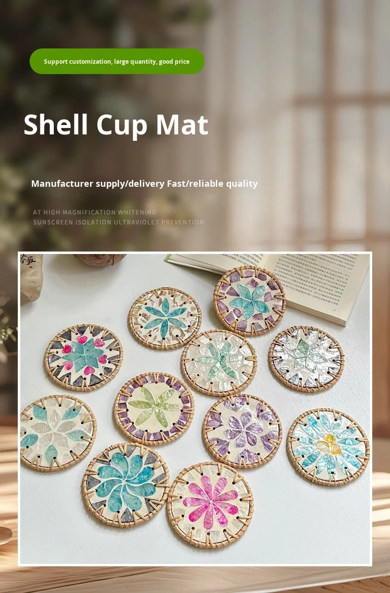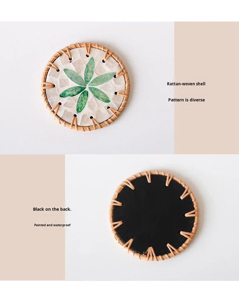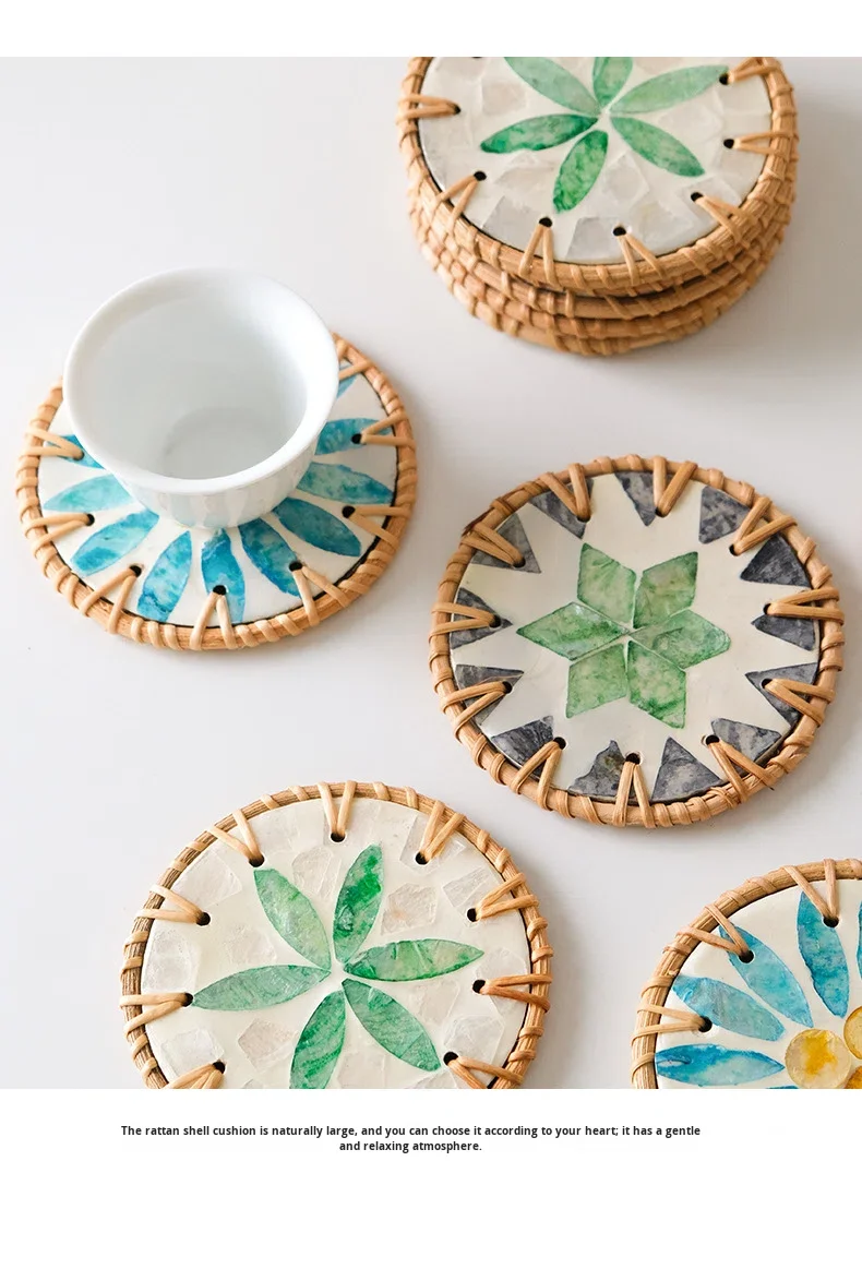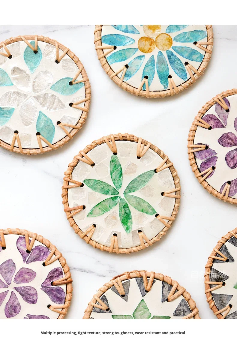 Southeast Asian Style Simple Rattan Colorful Shell Coasters Heat-Insulating Anti-Scalding Cup and Bowl Mats Stock