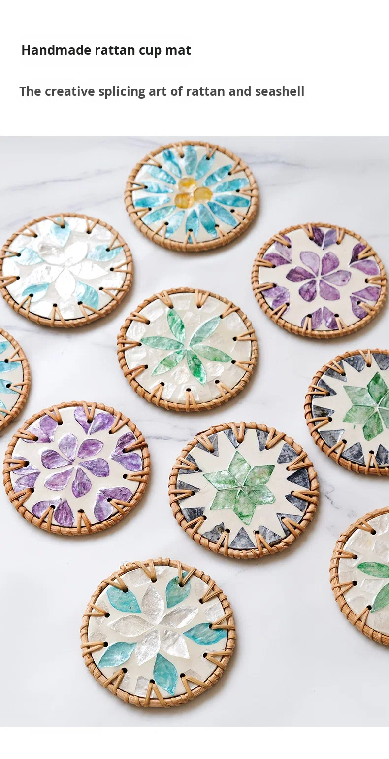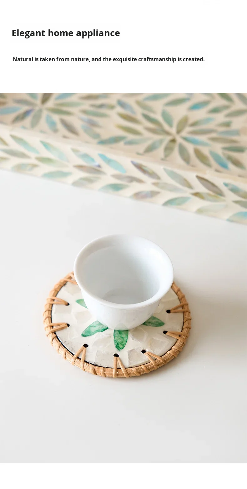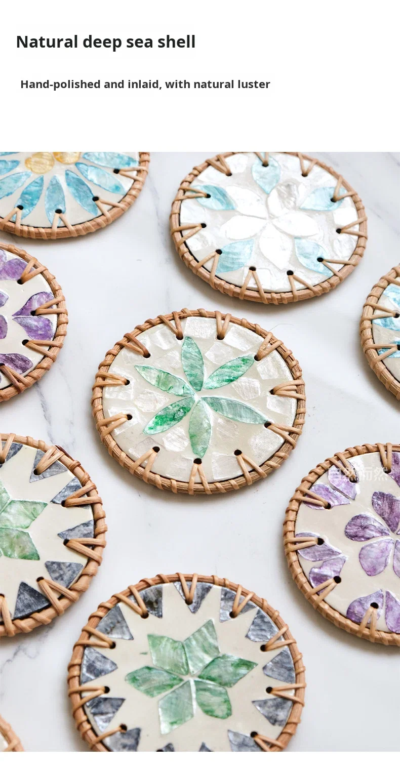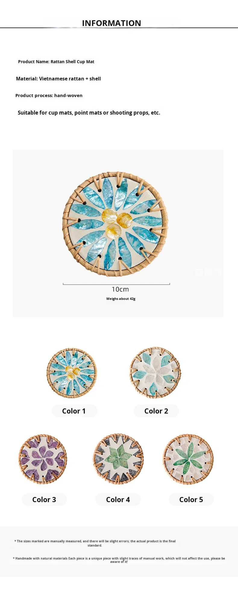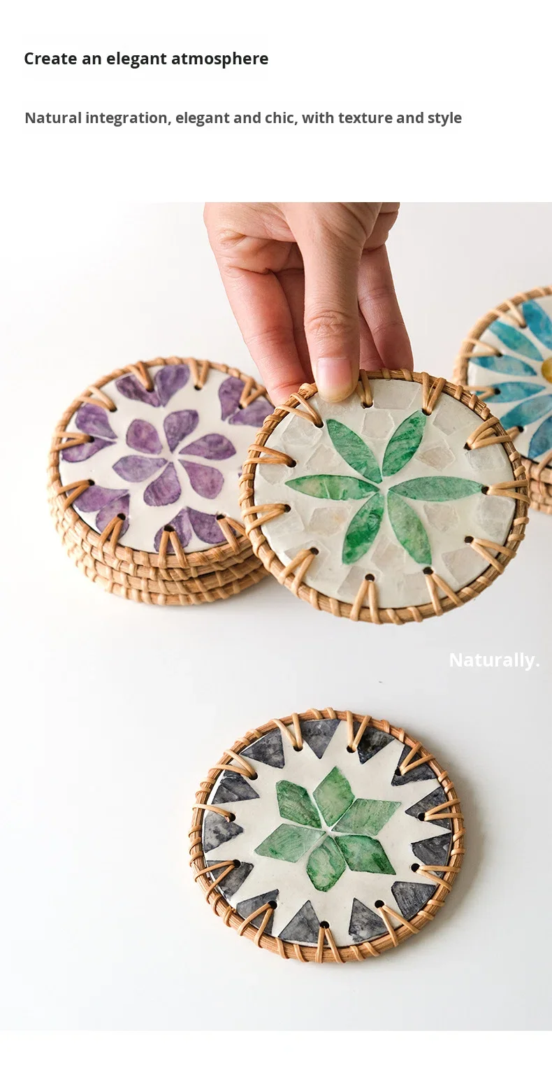 Southeast Asian Style Simple Rattan Colorful Shell Coasters Heat-Insulating Anti-Scalding Cup and Bowl Mats Stock